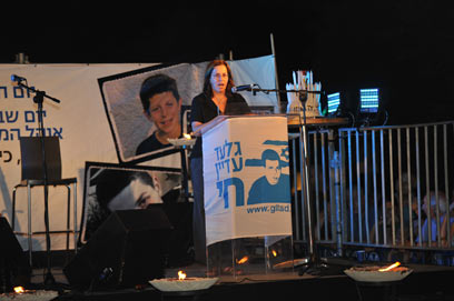 "גלעדי, האם אתה שומע אותי? האם אתה יודע שמדינה שלמה מגויסת, הלכה אחרינו למען שחרורך? צעדה עם אלפים לאוהל המחאה מול בית ראש הממשלה? מאז שהגענו לירושלים אנחנו מוקפים אזרחים.