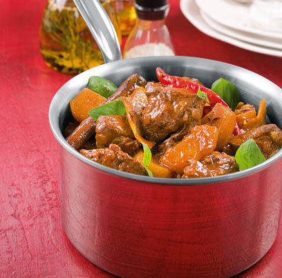 - מחממים מחבת כבדה, מוסיפים את השמן ומחממים מעט. מוסיפים את הבשר ומטגנים תוך ערבוב עד להשחמה קלה.