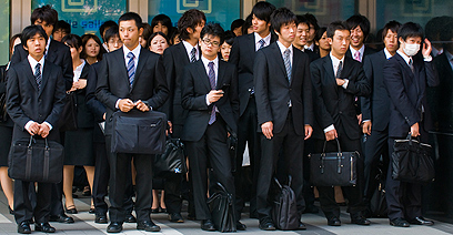 מצאו בתמונה את היפני שאינו לובש חליפה שחורה