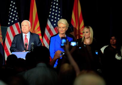 משפחת מקיין חוגגת ניצחון בפריימריז, בשבוע שעבר (צילום: AP)