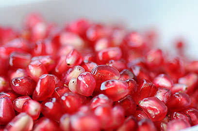 מקלפים את הרימון ואוכלים כף מלאה מהרימון.