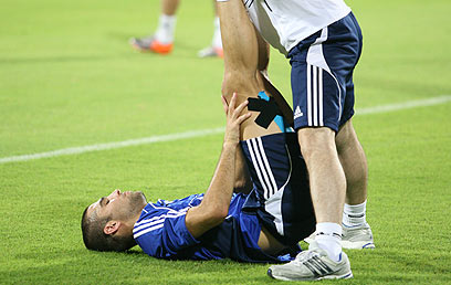 איתי שכטר מקבל טיפולים באימון המסכם (צילום: אורן אהרוני)