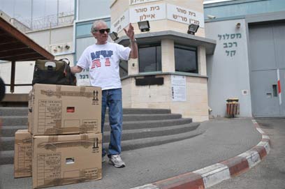 תפרו לו תיק. אדריאן שוורץ בצאתו מהכלא, היום (צילום: ירון ברנר)