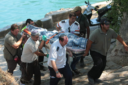גופתו של הקשיש מפונה מהבריכה בגן. הסחנה, הבוקר (צילום: חגי אהרון)