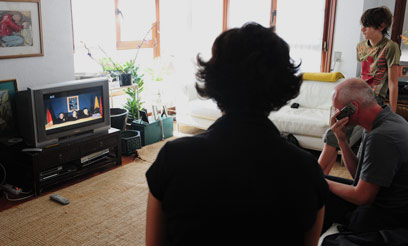 משפחה צופה בהכרזה הבאסקית (צילום: AFP)