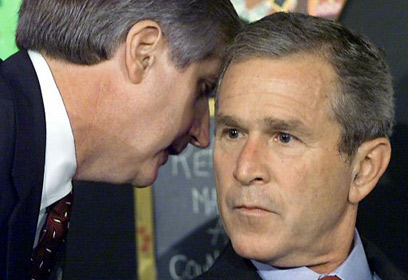 בוש תועד בעת שהתבשר על הפיגוע, 11 בספטמבר 2001 (צילום: רויטרס)