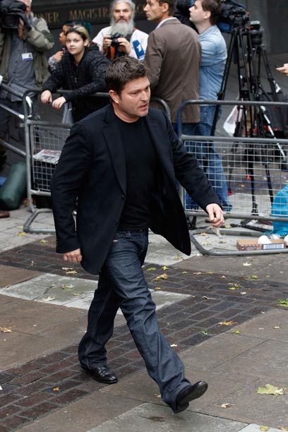 בן זוגו של מייקל, קני גוס, בכניסה לבית המשפט
