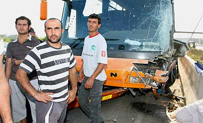 זירת תאונת הדרכים. עשרים טורקים נפצעו קל (צילום: עופר עמרם)