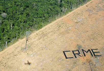 וזו כבר מחאה של ארגון גרינפיס על הרס יערות הגשם (צילום: רויטרס)