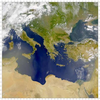 סופות חול מעל מזרח הים התיכון ביולי 2010 (צילום: נאס"א)