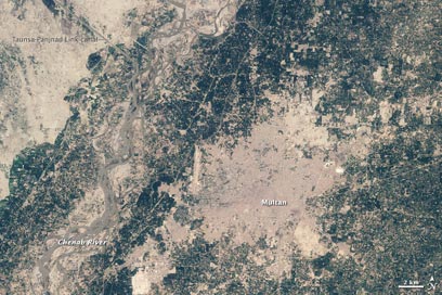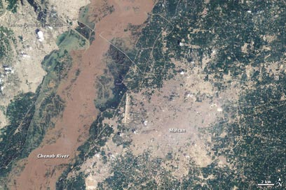 נהר צ'נאב בפקיסטן באוגוסט 2009 (צילום: נאס"א)