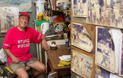 שייקה גורן. מקפיד לטפל באופניים באהבה, אבל בחולצה אדומה (עוז מועלם)