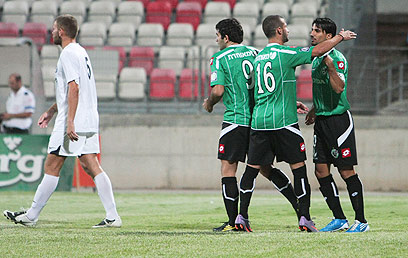 ליאור רפאלוב חוגג יתרון עם מוחמד גאדיר (צילום: חגי אהרון)
