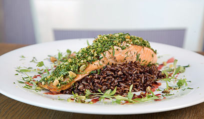 במשך כמה שנים חולל פה השף אורן לוקסנבורג נפלאות במטבח והוכיח שאפשר להכין אוכל גורמה גם ללא שימוש בבשר ובעוף (דגים דווקא יש.( לפני מספר חודשים הוא עזב, וסגניתו, מרסיה כצמן, תפסה את מקומו. התפריט עדיין משלב חומרים מפתיעים: מרק אפונה ירוקה עם אגוזי מלך, פטה אגוזים עם רוטב צלפים ועלים חריפים, ריזוטו חצילים שרופים עם מלפפונים וביצה עלומה וסלמון עם שבבי שקדים על אורז שחור. מתחת לכל מנה מצוין אם היא עשירה בחלבון, בסידן, בסיבים תזונתיים וכו.' השימוש בשמן מתון יחסית, וברוב המקרים היוגורט הוא תחליף הולם לשמנת.