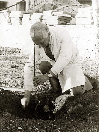 16. פרופסור נסאו מרופאי הילדים הוותיקים בבית החולים עפולה, נוטע עץ בט"ו בשבט.