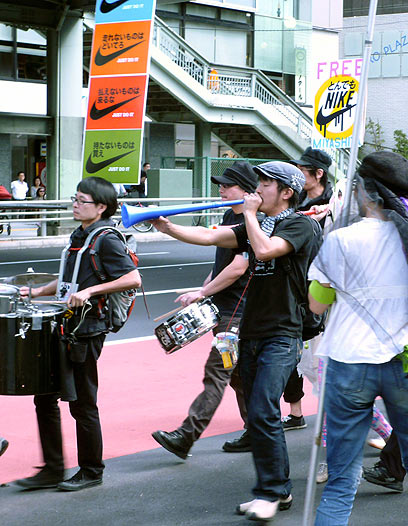 Just (Don't) Do It. את מרכז טוקיו הרעישו הבוקר (יום א') קולות תופים שנשאו חלק מ-200 המפגינים שמחו על הכוונה לאפשר לחברת "נייקי" להקים פארק ציבורי ובו אטרקציות ספורטיביות שייקרא על שמה - בטענה שמדובר במהלך הסוואה לגירושם מהמקום של עשרות מחוסרי בית.