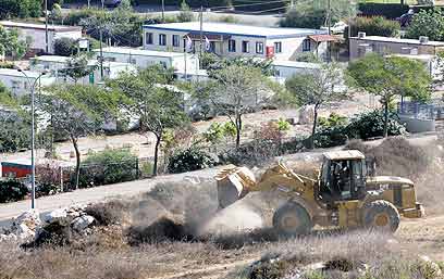 הדחפורים עובדים מול שכונת הקרוואנים. בתי הקבע מוקמים (צילום: עידו ארז)