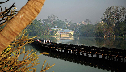 שעת בוקר באגם קנדאוג'י בבירה יאנגון