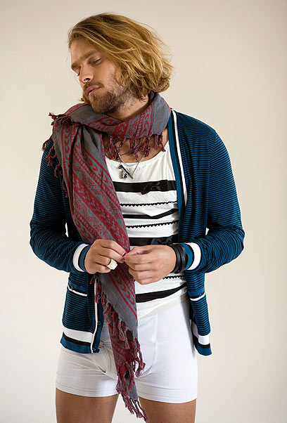 לאונרדו: חולצה - ברשקה, קרדיגן - טי אן טי, תחתונים - דלתא, צעיף - זארה, שרשרת - הוניגמן, צמיד - גולף, טבעת - אקססורייז.