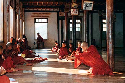 אחד המאפיינים הבולטים של זרם הת'רוואדה (הקיים במיאנמר, בתאילנד, בלאוס, בקמבודיה ובסרי-לנקה) הוא הנזירות הזמנית. על כל גבר במיאנמר לעזוב, לפחות פעמיים בחייו, את החיים הטובים, להשאיר את כל רכושו בבית, ולהצטרף למנזר. תקופת הנזירות הזמנית הראשונה מתרחשת אצל מרביתם עוד בהיותם ילדים. בכל מקום במיאנמר נראים ילדים צעירים בתלבושת נזירים. לאחר טקס מרהיב שבמהלכו מולבשים הילדים בבגדי נסיכים, הם מועברים אל המנזר, שם מגלחים את ראשם, ולראשונה הם עוטים לגופם את בגדי הנזיר.