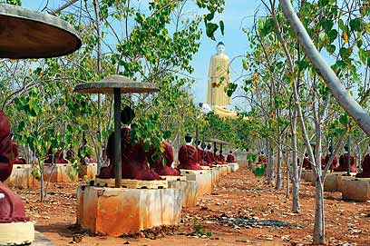 אלפי פסלי בודהה משקיפים לפסגת ההר. מקדש בודהי טטאונג