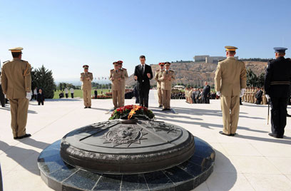 אסד ליד האנדרטה לזכר החיילים הסורים (צילום: AFP)