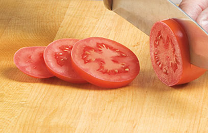 מבחן הסכין והביס: "בעת החיתוך יצא מעט נוזל, אבל לא השפריץ לכל הכיוונים. מאחר והעגבנייה מוצקה, קל לחתוך אותה. מבחינת הביס - העגבנייה לא משפריצה והסביבה נשמרת נקייה".