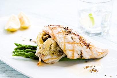 שילוב צבעוני של טעמים בין דג עסיסי לחציל קלוי ואספרגוס פריך. כל שנותר לעשות הוא להעמיס על המזלג ולתת ביס. בתיאבון