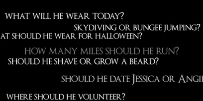 האלמנט השני שנכנס הוא המעורבות של הצופים: בערך 15 פעמים ביום יעלו באתר שאלונים שיציעו לגולשים לקבל עבור טריס החלטות כמו מה הוא ילבש לראיון עבודה או עם איזו בחורה הוא יצא. אם נדלקתם על הרעיון לשלוט בחיים של בנאדם אחר - זה לא בדיוק המקרה.