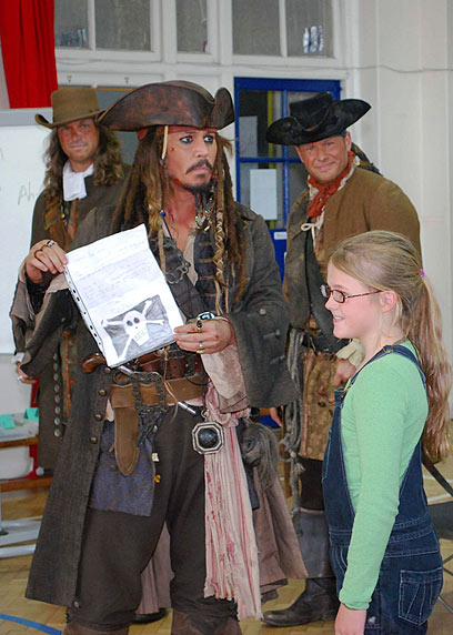 ג'וני דפ הפתיע השבוע תלמידי בית ספר בלונדון כשהגיע אליהם לביקור כשהוא לבוש בבגדי הדמות שלו מסרטי "שודדי הקאריביים". דפ בן ה-47 השיב למכתבה של הילדה ביאטריס דלאפ בת התשע, שביקשה ממנו עזרה בארגון מרד נגד המורה שלה בבית הספר היסודי במחוז גריניץ'.