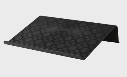 BRADA - מעמד למחשב נייד עשוי פלסטיק. המעמד הוא בעל שוליים מוגבהים המאפשרים לשמור על המחשב במקומו. בעל רצועת גומי התומכת ומחזיקה את המחשב. צבע: שחור. מחיר: 22 שקל. ניתן להשיג במחלקת ריהוט משרדי.