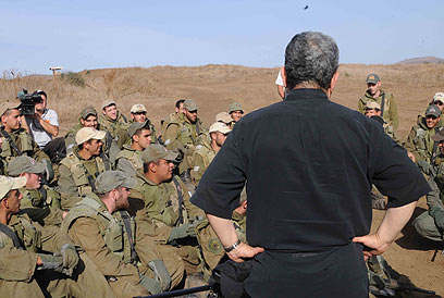 שר הביטחון בשיחה עם לוחמי השריון (צילום: אביהו שפירא)