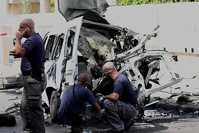 הרכב ההרוס בשד' הקיבוצים. "ממש כמו בפיגוע" (צילום: אבי מועלם)