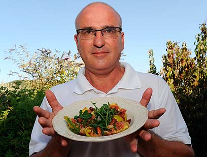 גיא פרץ עם ריבת החצילונים (צילום: אבי רוקח)