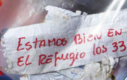 במשך 17 הימים הראשונים קיבל כל אחד מהם ארוחה אחת מדי 48 שעות, שכללה שתי כפיות של טונה, חצי כוס חלב וחצי ביסקוויט. ואז, בדיוק כשאזל הפרור האחרון, ארע הנס. סימן החיים הראשון מהכורים הגיע ב-22 באוגוסט, כאשר המחלצים שמעו דפיקות, שלפו את המקדחה שהגיעה לעומק המכרה, ומצאו פתק מחובר אליה בו נכתב: "אנחנו בסדר, במקום המחסה. ה-33".