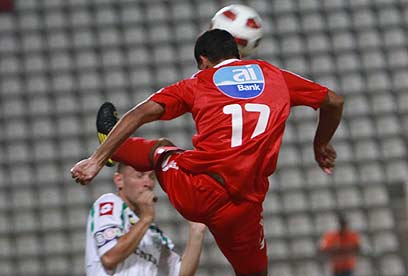 דקה 14: שלומי אזולאי היה הראשון להגיע להזדמנות נוחה, אך מעבר לעובדה שהנגיחה שלו פספסה את המסגרת, הקוון הניף את דגל הנבדל.
