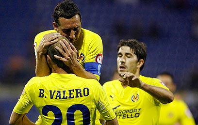 ואלרו חוגג את השער של ויאריאל, אחר כך הוא הורחק (רויטרס)