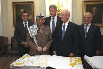 רבין, מנהיגי ערב וקלינטון. "סטייה מהאסטרטגיה" (צילום: אבי אוחיון, לע"מ)