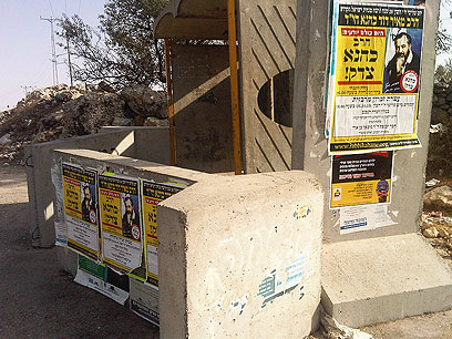 נערכים לאזכרת הרב כהנא. מודעות שנתלו הלילה (צילום: אורן רוזנפלד)
