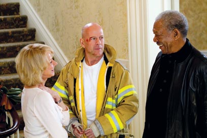 עכשיו הוא מככב ב"RED" (ראשי תיבות של "בפרישה, מסוכן ביותר" בתרגום מיידי), סרט אקשן שעלה בשבוע שעבר אצלנו, על סוכן בפנסיה שהופך על לא עוול בכפו ליעד ממשלתי ונאלץ לגייס את חברי הצוות הישן שלו (מורגן פרימן, הלן מירן וג'ון מלקוביץ' המצוין) כדי לחסל את האיום. על הדרך הוא מתאהב במרי לואיז פרקר ("העשב של השכן") והולך מכות עם קארל אורבן ("שר הטבעות"), תוך שהוא מפזר מבטי פלדה כחולים. פרימן ומירן מצידם מפגיזים בנשיקה גריאטרית, ואפילו ריצ'רד דרייפוס קשישא מוכיח שהוא עדיין חי, על המסך.