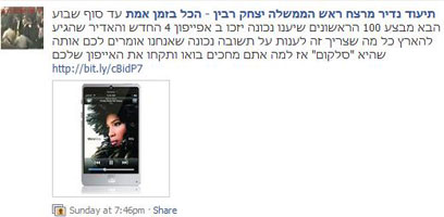 רצח רבין ממלא אנשים רבים בזכרונות עגומים, כעס, תדהמה ואולי גם תקווה לעתיד אחר. בפייסבוק תוכלו למצוא גם סוג שונה מאוד של אנשים: אלו שמשתמשים בכל אזכור של הרצח כדי להלל את הרוצח או לטעון שראש הממשלה נרצח על ידי השב"כ. לצידם הופיע לאחרונה סוג חדש, שעבורו רצח רבין הוא הזדמנות למכור קופונים לגלידה ואייפונים.