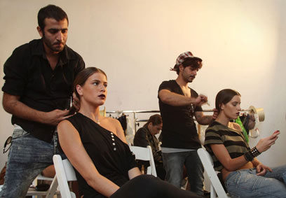 אמיר מזרחי וצוותו עמלים על שיערן של הדוגמניות, שהגיעו בשעת בוקר מוקדמת
