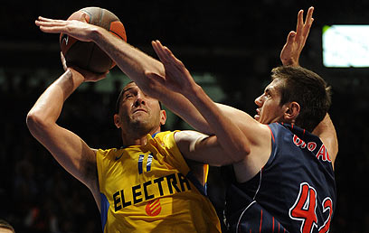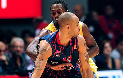באראץ' עוצר את בורשטיין, תקע את התקפת מכבי (AFP)