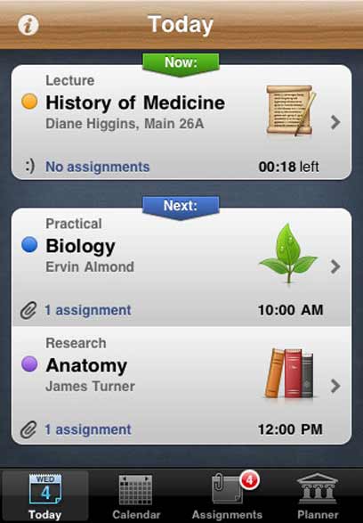 זוכת פרס האפליקציה הטובה ביותר בקטגוריית לימודים 2009. האפליקציה, הכוללת תמיכה בעברית, עוזרת לנהל ולהשתלט על תוכנית הלימודים שלכם, לעקוב אחרי כל הקורסים, הרצאות, מטלות ודדליינים, וארגון עבודות בית ומשימות.