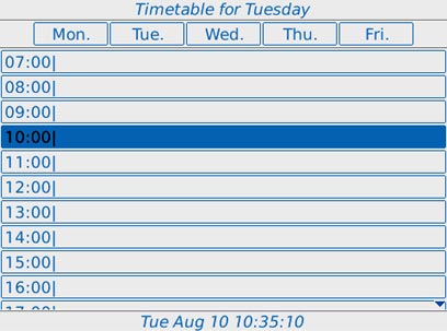 האפליקציה מאפשרת לסדר את השיעורים בצורת משבצות צבעוניות בטבלה שבועית. הצבעים, כמובן, עוזרים לעקוב אחר שיעורים זהים או שונים. ניתן לקבל תצוגה של שבוע מלא או ימים פרטניים המסודרים בלשוניות, להגדיר מחזור דו שבועי של שיעורים (שבוע כן שבוע לא).