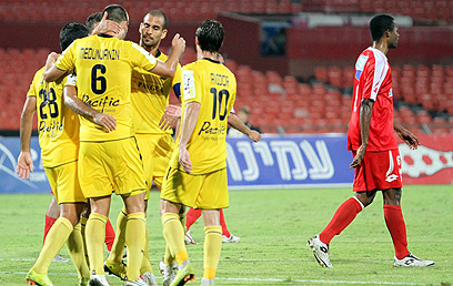 מדוניאנין והחברים בצהוב חוגגים את היתרון (עוז מועלם)