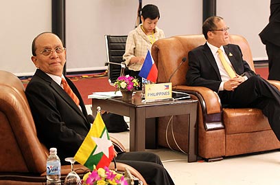ר"מ מיאנמר תאין סיין ונשיא הפיליפינים אקינו, היום (צילום: AFP)