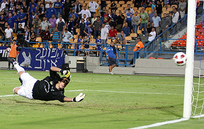 שוער הפועל פ"ת כבר נכנע, אך העמוד מנע מחיפה את היתרון (דרור עינב)