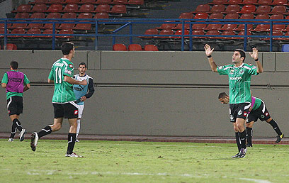4': איזה מטווח של הירוקים. לא חלפה דקה מההחמצה של ויסה וליאור רפאלוב סובב מהעבר השני כדור נפלא מקצה הרחבה אל העמוד. מיד לאחר מכן ניסה גם שלומי אזולאי את מזלו בבעיטה מ-20 מטרים, שניר דורי נכנע, אך המשקוף בלם את הפצצה של החלוץ.
