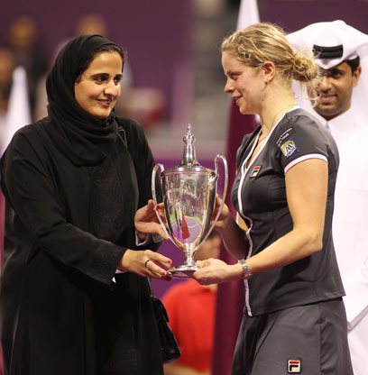 המדורגת רביעית בעולם קים קלייסטרס זכתה הערב (א') באליפות המאסטרס שנערכה בדוחא, קטאר, לאחר שגברה בגמר על המדורגת ראשונה קרוליין ווזניאקי 3:6, 7:5, 3:6. כזכור, הבלגית היתה מעורבת בתאונת דרכים בדרכה לחצי הגמר בשבת, אך זה לא הפריע לה להביס את סמנטה סטוסור, כדי להבטיח מקום בגמר.